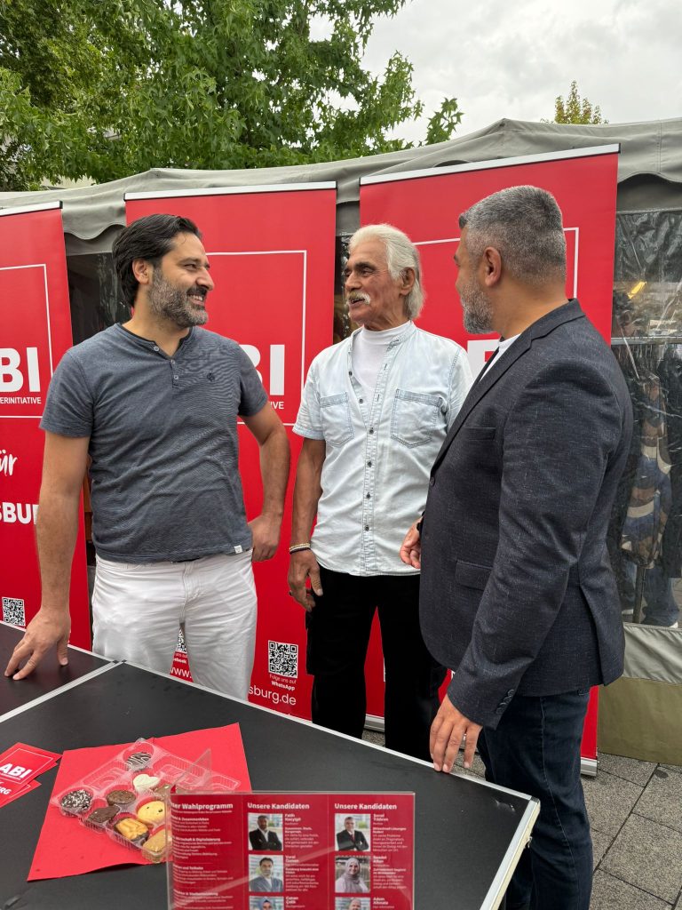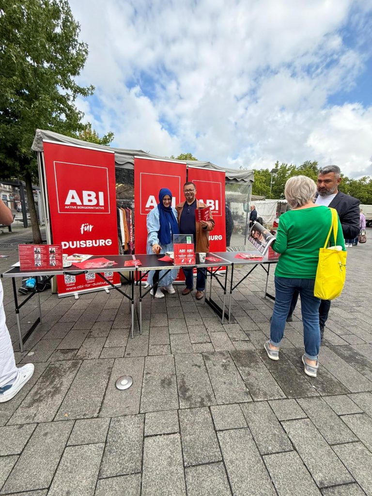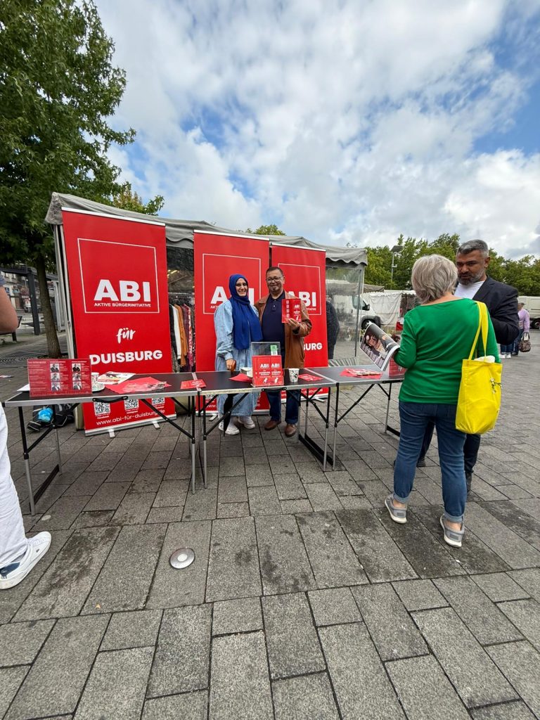 An mehreren Ständen nutzten Interessierte die Gelegenheit, mit den Kandidatinnen und Kandidaten ins Gespräch zu kommen. Die ABI war unter anderem auf dem Rheinhausener Markt, dem Hochfelder Markt, dem Hamborner Markt und dem Beecker Markt präsent. Themen wie soziale Gerechtigkeit, Stadtentwicklung und Umweltfragen standen dabei im Mittelpunkt. Viele Besucherinnen und Besucher äußerten ihre Vorstellungen und Wünsche, die von den Vertreterinnen und Vertretern der ABI aufmerksam aufgenommen wurden.